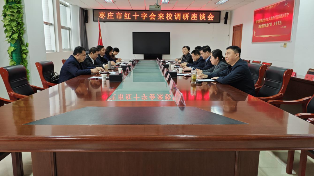 4月8日下午,市红十字会党组书记、常务副会长邵涛带队赴枣庄科技职业学院调研高校红十字工作。市红十字会党组成员、副会长夏近涛、王新甫,市中心血站站长胡卫国参加调研。滕州市委副书记、统战部部长程亮和枣庄科技职业学院、滕州市红十字会有关负责同志陪同调研活动。