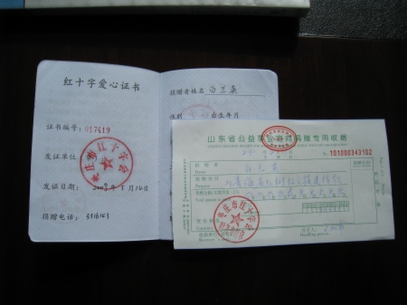 4月20日,市纺织办的张宗祥主任受白兰英老人委托又一次来到市红十字会办公室,向青海玉树灾区捐款2000元,这是迄今为止市红十字会收到的最大一笔个人捐款。打开颁发给老人爱心证书,一笔笔捐款历历在目:2008年为四川汶川地震灾区捐款3000元,为台风灾区捐款1000元……